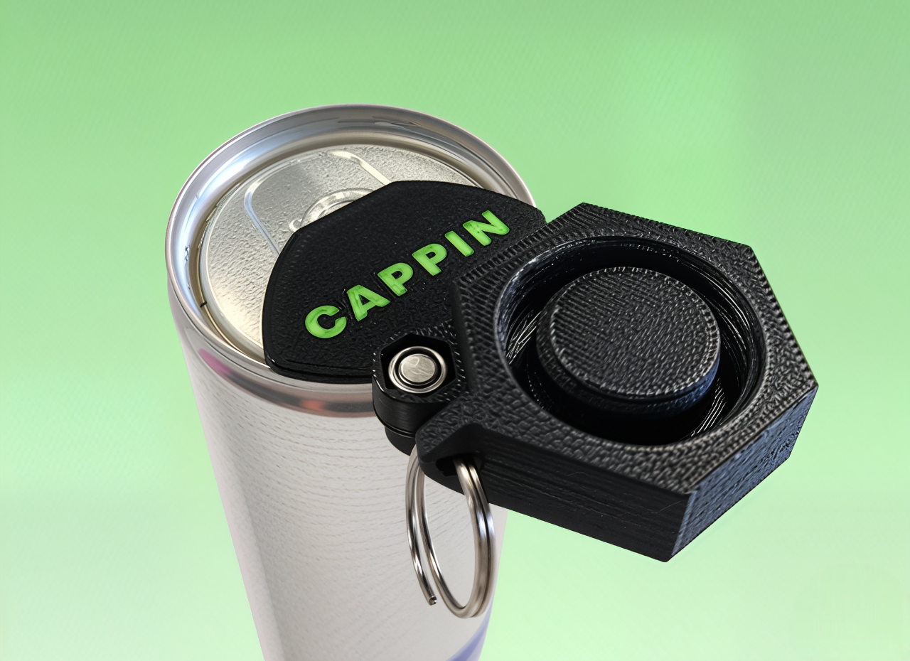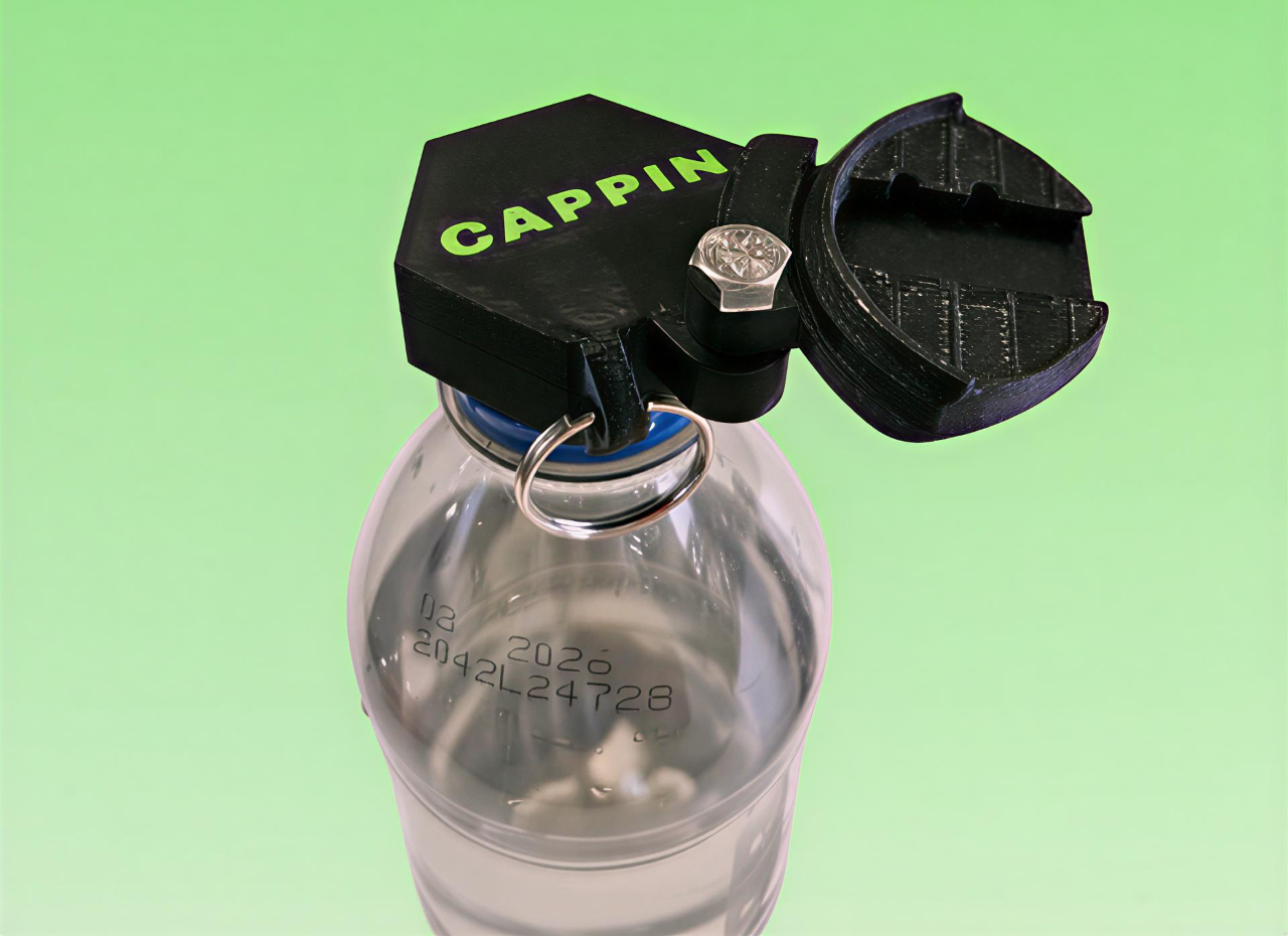 Cappin is een innovatieve, universele, herbruikbare dop ontwikkeld voor blikjes en flesjes. Het product combineert gemak, hygiëne en veiligheid. Met behulp van 3D on Demand is het product ontworpen. De dop is compact, stijlvol en eenvoudig in gebruik. Dankzij het slimme draaimechanisme kan men drinken zonder de dop te verwijderen, en het product voorkomt vervuiling, morsen en drankspiking.